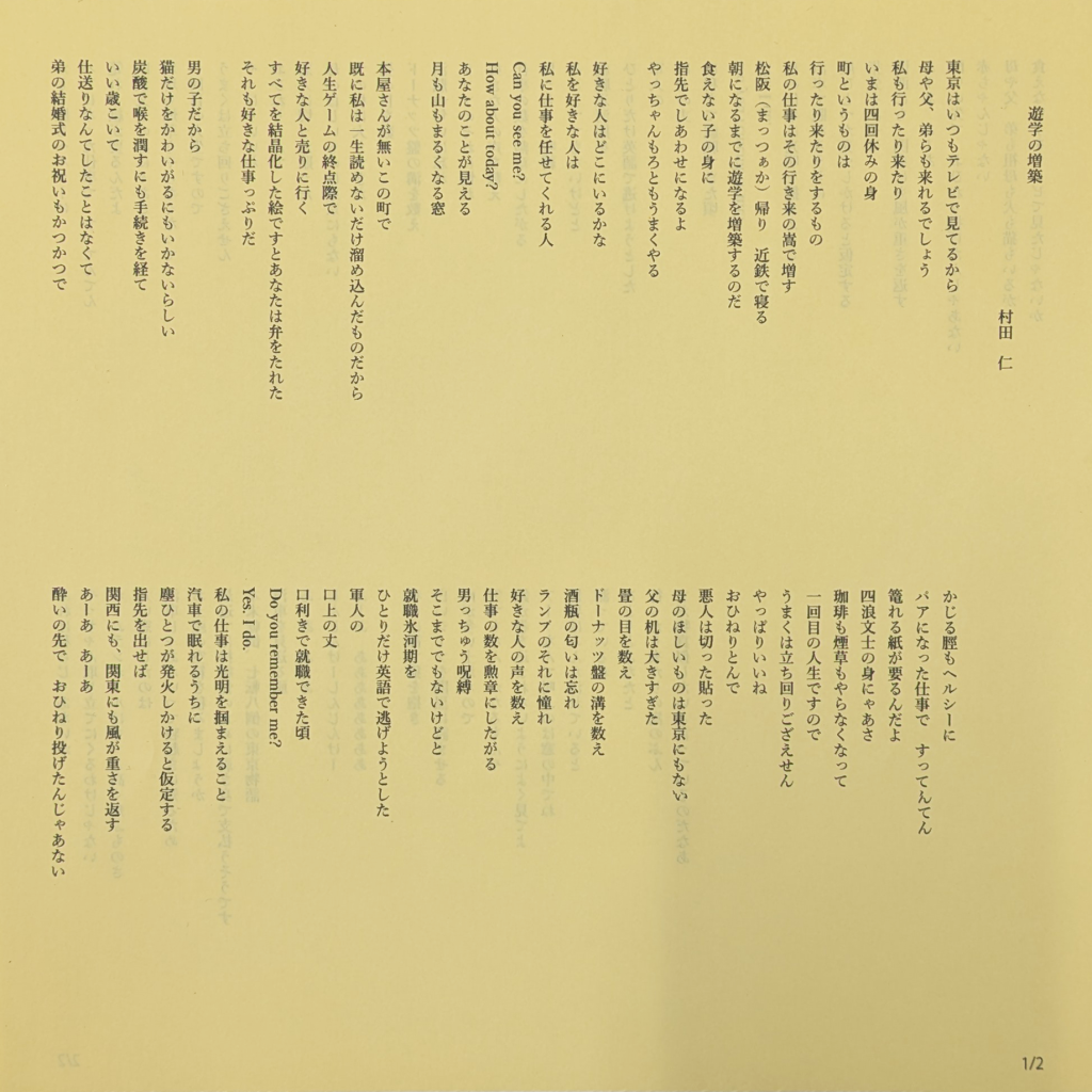 松阪(旧一志郡嬉野町)出身の詩人 村田仁(1979-)は、詩『遊学の増築』 を書くことで、自身の経験と引き合わせる。