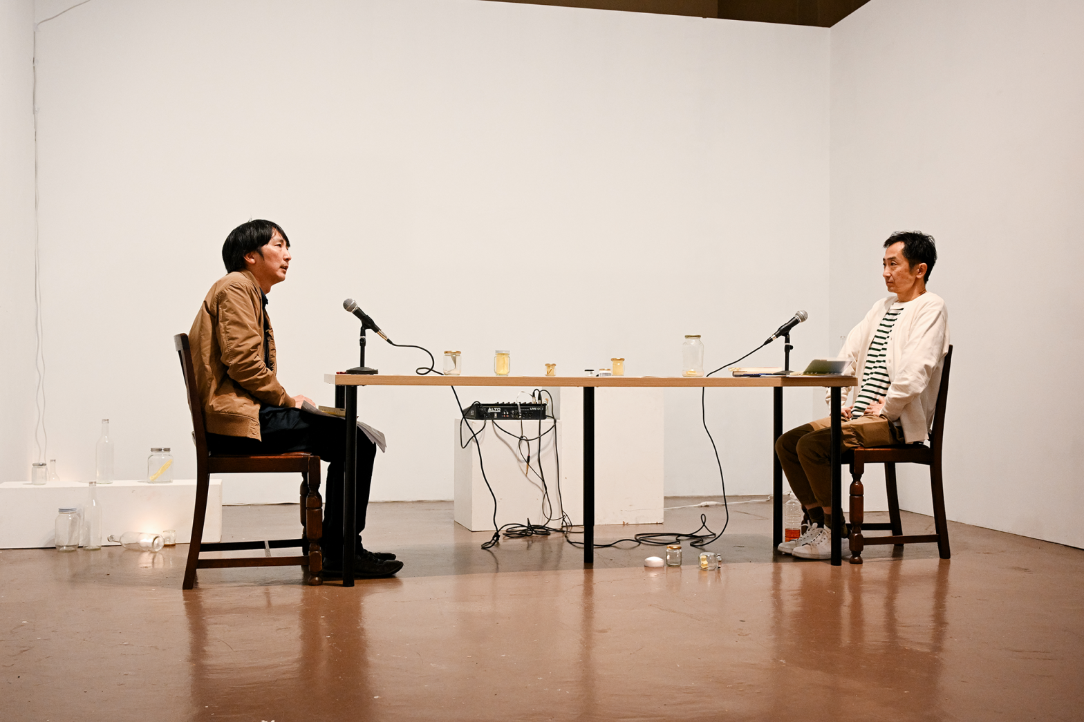 東京を拠点に、ひとり出版社「やしの実ブックス」や、ポエトリーリーディング、演劇などでも活動する詩人の村田活彦さんをお呼びし、投壜通信のインスタレーション空間のなかで、二人の詩人が、詩についてを話します。