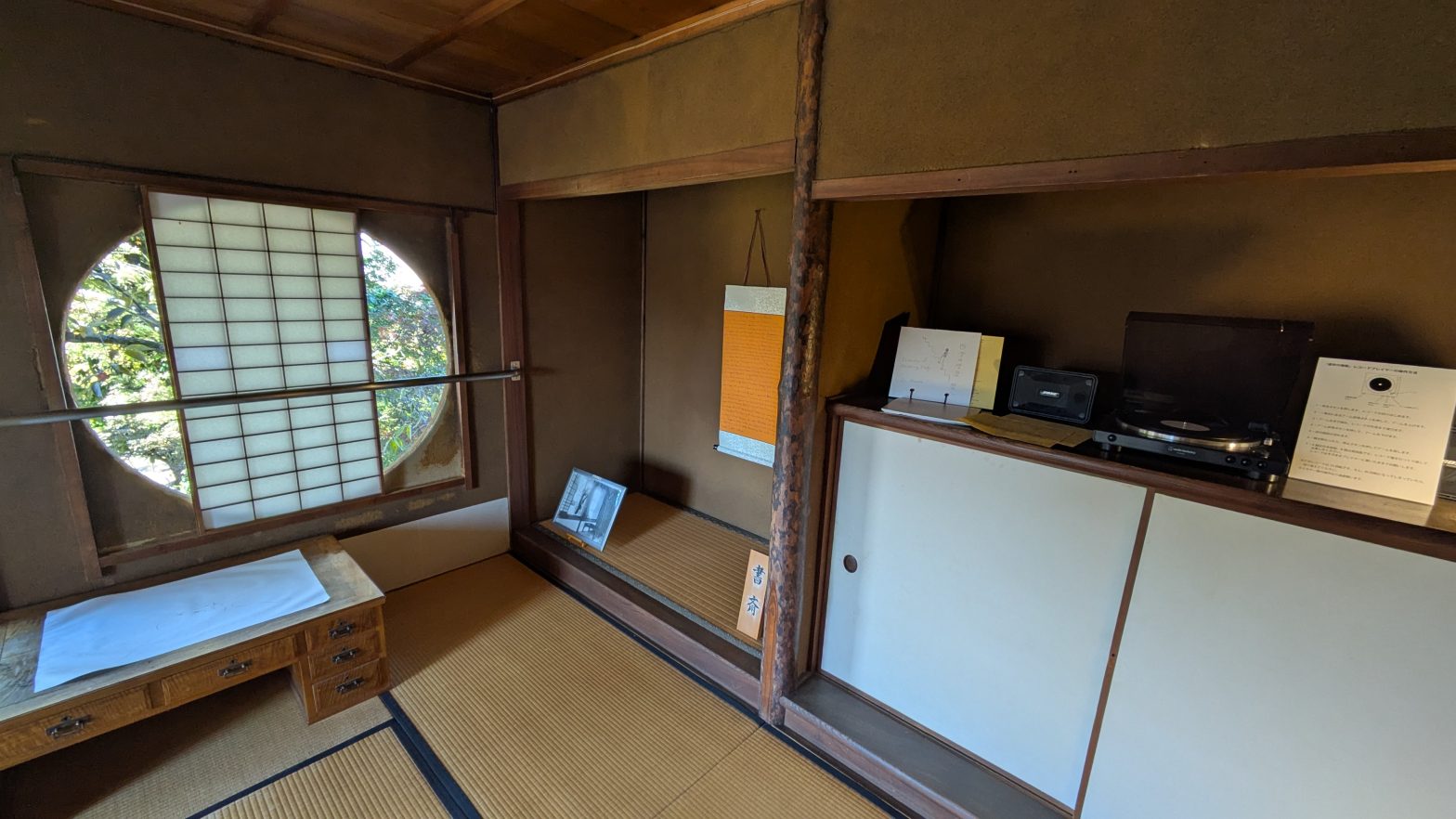 『遊学の増築』掛軸、レコードプレイヤー、紙、紹介ビデオ。2025年 三重県松阪市の有形文化財「原田二郎旧宅」の二階に展示。企画展「第5回 松阪カルチャーストリート」のために制作。実業家 原田二郎 (1849-1930)は… 続きを読む 遊学の増築